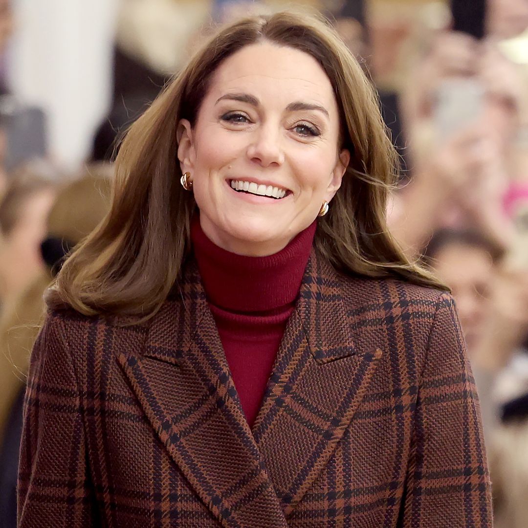 The Duchess, who turned 43 on January 9, shared the message on social media hours after visiting the hospital in Chelsea, London, where she received chemotherapy last year. Looking radiant, the wife of Prince William wore a burgundy Tartan coat and a plum turtleneck sweater, paired with a matching A-line skirt.